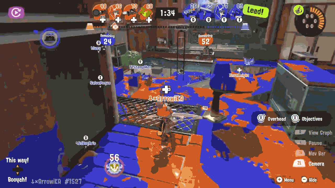 - The most morally incorrect game I've ever played was this Turf War game when Qul, Micah, and Octo (of Inkblot Dropouts fame) and I all decided to do quad Explosher with it. Here's an overhead replay of the game, if you're curious.